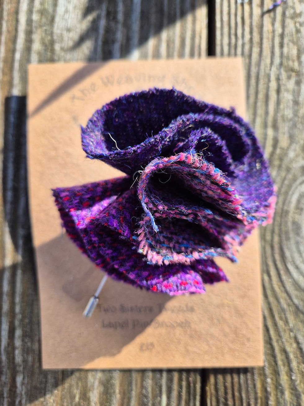 Handcrafted from handwoven tweed here on the Isle of Lewis these fun pin brooches add a pop of colour to any outfit. Perfect for a suit lapel for a wedding or christening, a ladies hat, coat or bag, to decorate a scarf or cardigan the possibilities are endless!